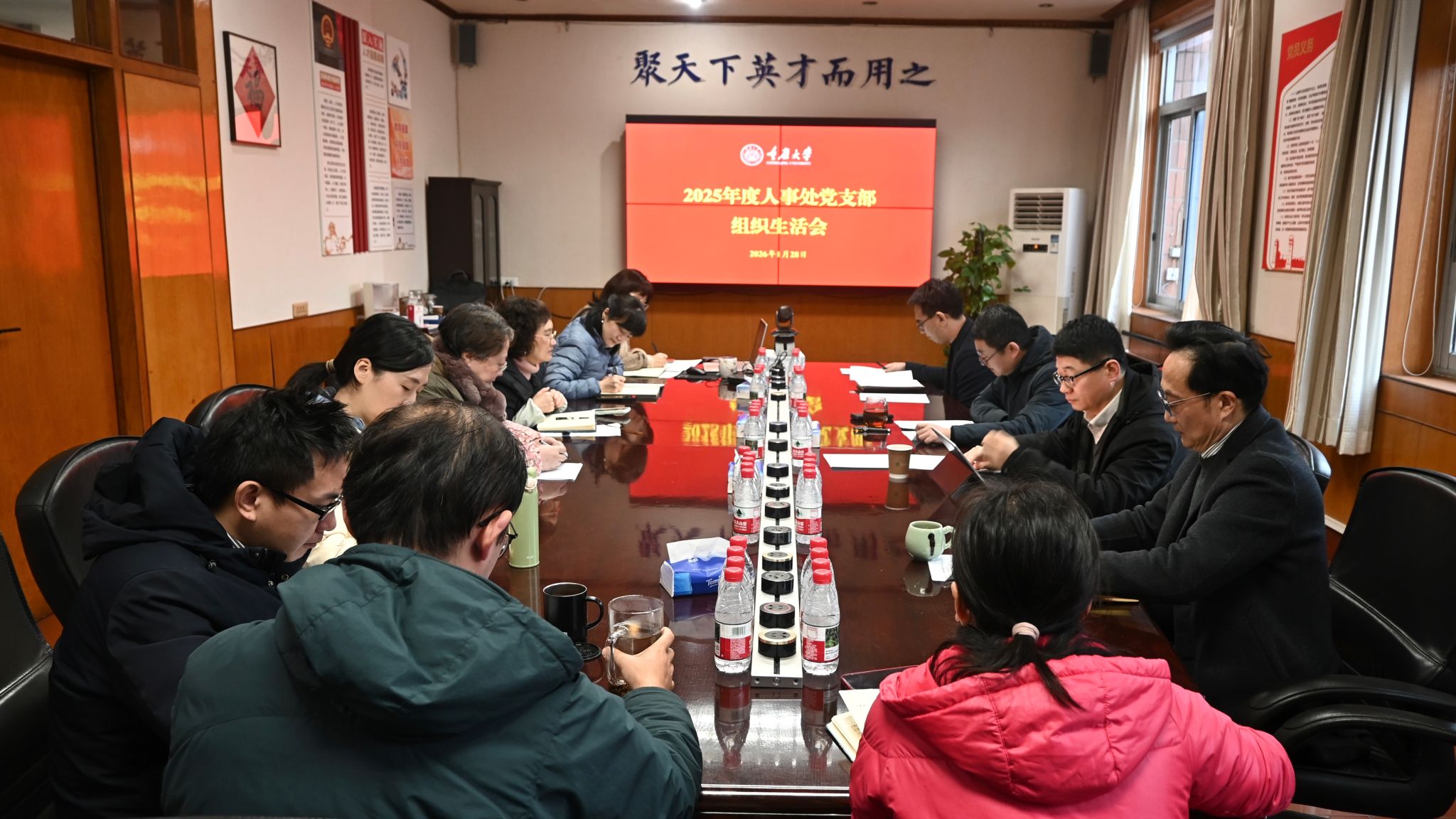 根据学校党委统一部署,1月28日上午,人事处党支部召开2025年度组织生活会并开展民主评议党员工作。会议由人事处处长、党支部书记吕学伟主持,党办校办主任、机关党委委员陈林现场督导,支部全体党员参加。