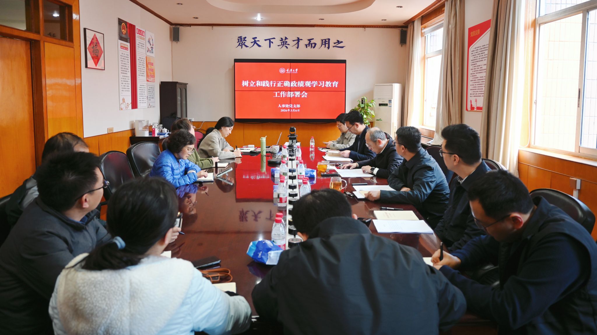 为深入学习贯彻习近平总书记关于树立和践行正确政绩观的重要论述,3月6日下午,人事处党支部召开树立和践行正确政绩观学习教育工作部署会。校党委常委、副校长邓绍江参加并作指导发言,人事处党支部书记吕学伟主持会议,支部全体党员参加会议。