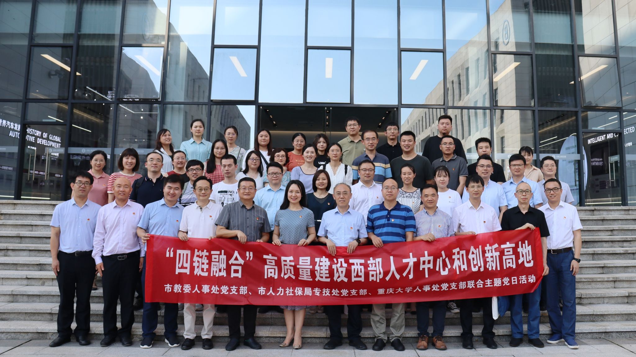 6月27日下午,为深入贯彻党的二十大精神,贯彻习近平新时代中国特色社会主义思想,高质量建设西部人才中心和创新高地,市教委人事处党支部、市人力社保局专技处党支部、重庆大学人事处党支部联合开展“‘四链融合’高质量建设西部人才中心和创新高地”主题党日活动。重庆大学党委常委、副校长邓绍江,市教委人事处党支部书记、处长齐正军,市人力社保局专技处党支部书记、处长易君,重庆大学人事处党支部书记、处长吕学伟,国家卓越工程师学院党总支书记韦迎春,执行院长罗远新等40余名同志参加了活动,活动由齐正军主持。